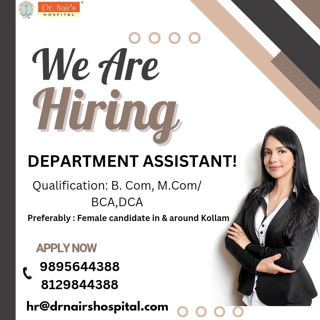 WE ARE HIRING!! DEPARTMENT ASSISTANT CONTACT: 9895644388